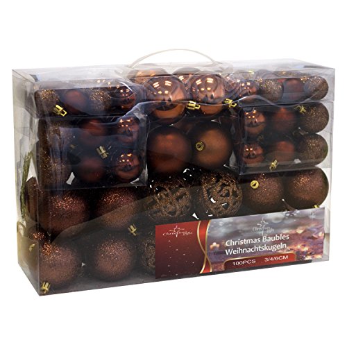 Specificaties: 100 kerstballen brons bruin glanzend glinsterend mat kerstboomversiering tot Ø 6 cm boomversiering kerstdecoratie hanger
