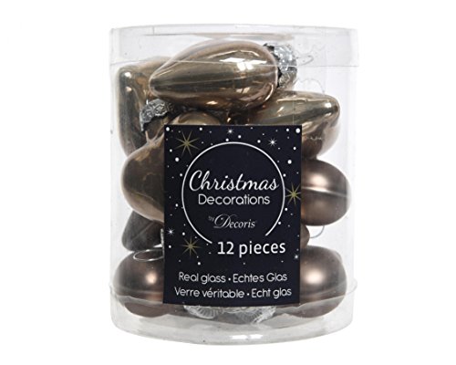 12 kerstballen glazen harten 40 mm (kasjmierbruin/taupe) kerstballen boomversiering kerstversiering kerstballen glazen ballen doos