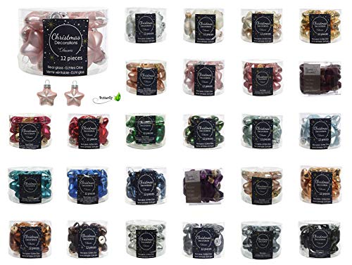 Specificaties: 12 kerstballen glazen sterren 40 mm kerstballen boomballen kerstdecoratie ballen glazen ballen doos zand beige