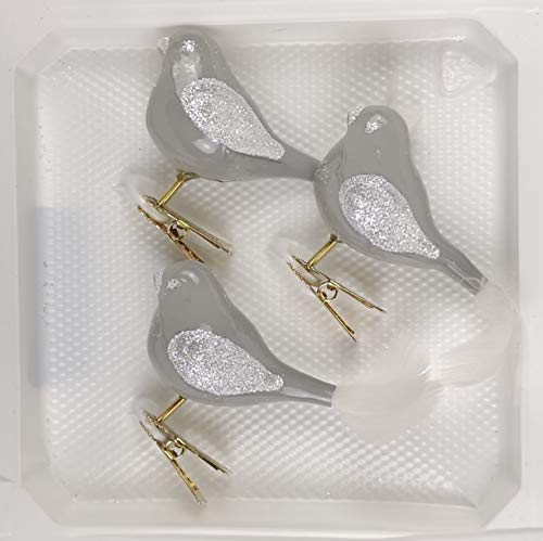 Specificaties: 3-delig Glazen vogel set in hoogglans modern grijs wit – edele nieuwheid – kerstballen – kerstversiering – kerstboomversiering