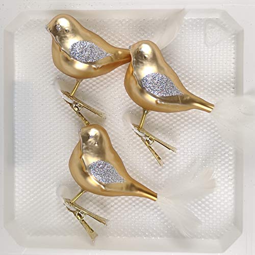 Specificaties: 3-delig Glazen vogel set in klassiek goud zilver – edele nieuwheid – kerstballen – kerstversiering – kerstboomversiering