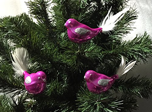 Specificaties: 3-delige Glazen vogel set in”hoogglans roze” – nieuw – kerstballen – kerstversiering – kerstboomversiering