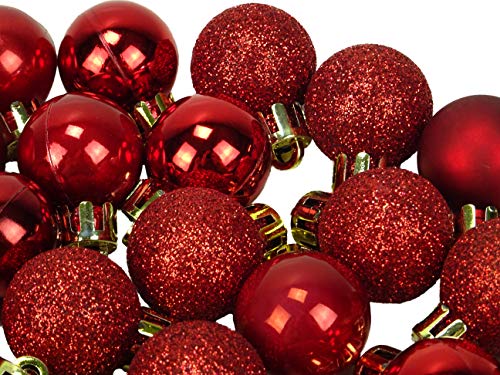 Specificaties: 32 mini kerstballen – rood – kerstboomversiering