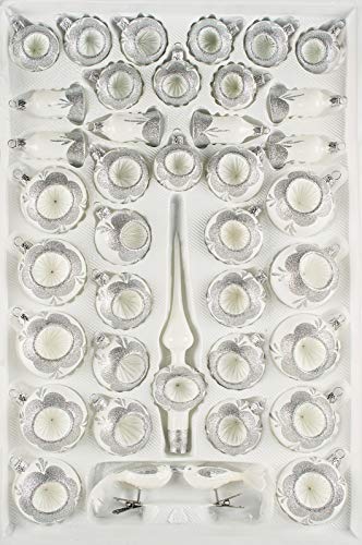 Specificaties: 39-delige Glazen kerstballenset in”hoogglans vintage classic wit” – kerstballen – kerstversiering – kerstboomversiering reflectorballen reflecterende ballen reflector bal