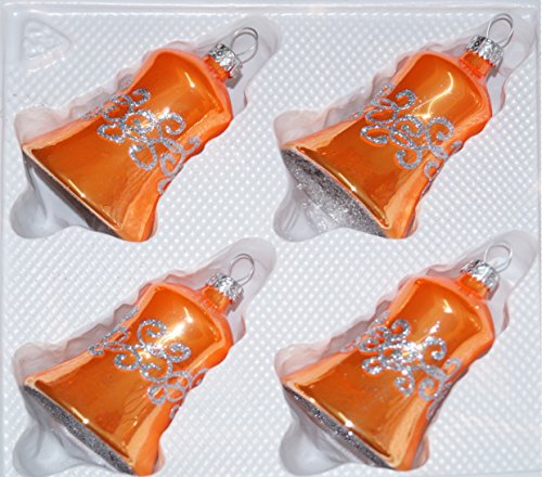 Specificaties: 4-delig. Glazen klokken set in hoogglans oranje-zilveren ornamenten – nieuw – kerstballen – kerstversiering – kerstboomversiering