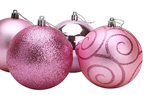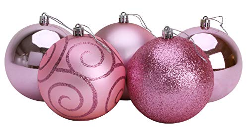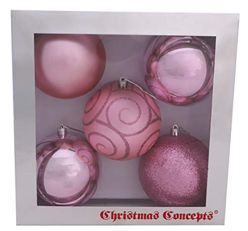 Deze prachtige onbreekbare kerstballen fleuren elke kerstboom op! Ze kunnen ook worden gebruikt om een ??slinger te maken door touw of lint door de bovenkant te halen en op te hangen in het raam, aan de schoorsteenmantel of aan de muur. Dit pakket bevat in totaal 5 babyroze kerstballen, inclusief een assortiment glitter-, matte, glanzende en glitter swirl designs. Elke kerstbal meet ongeveer 10 cm en wordt geleverd met een zilveren top met een zilveren koordlus eraan. Exclusief ontworpen en geproduceerd voor Christmas Concepts Ltd.