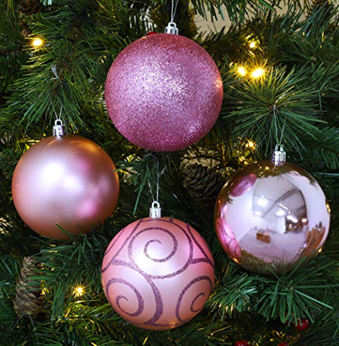 5-100 mm Grote Kerstballen – Glanzend, Mat en Glitterontwerp – Kerstversiering (Babyroze)