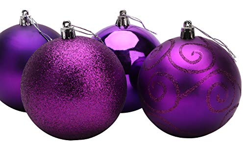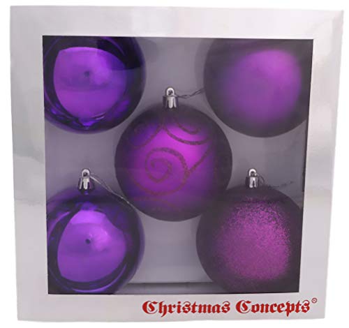 Deze prachtige onbreekbare kerstballen fleuren elke kerstboom op! Ze kunnen ook worden gebruikt om een ??slinger te maken door touw of lint door de bovenkant te halen en op te hangen in het raam, aan de schoorsteenmantel of aan de muur. Dit pakket bevat in totaal 5 paarse kerstballen, inclusief een assortiment glitter-, matte, glanzende en glitter swirl designs. Elke kerstbal meet ongeveer 10 cm en wordt geleverd met een zilveren top met een zilveren koordlus eraan. Exclusief ontworpen en geproduceerd voor Christmas Concepts Ltd.