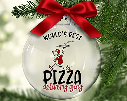 565pir Gepersonaliseerde versiering Wereldbeste pizza Delivery Guy kerstversiering, glas, restaurant kerstbal