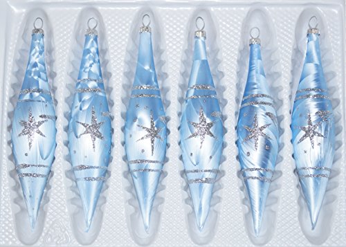 6-delige Glazen pinnen set in”Ice Blue Silver” komet – kerstballen – kerstversiering – kerstboomversiering