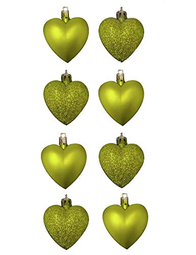 Specificaties: 8 x 5 cm LIME GREEN Glitter + Mat Hartvormige kerstboomballen