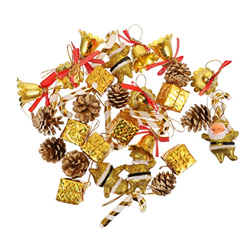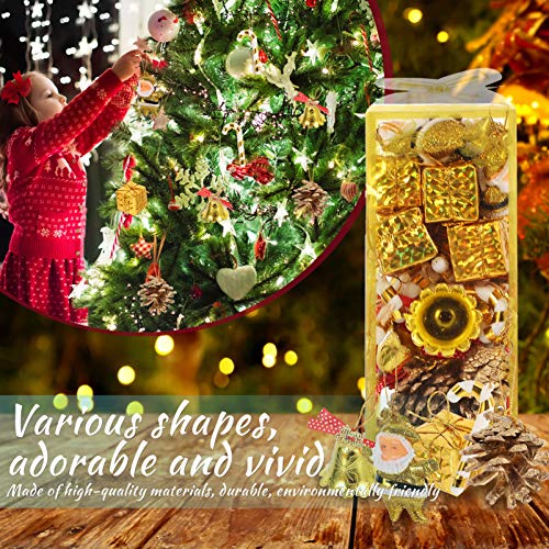 Amosfun 36 Stks Kerstboom Ornament Set Bel Geschenkdoos Candy Cane Kerstboom Decoratie Voor Onbreekbaar Xmas Boom Opknoping Hanger (Gouden)