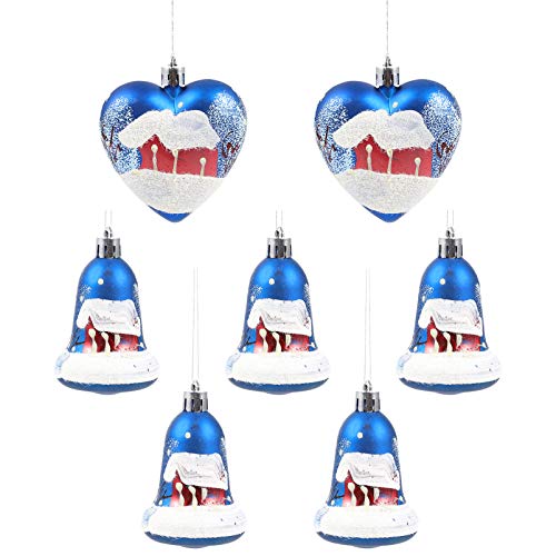 Amosfun 7 Stks Kerstboom Bal Ornamenten Kerst Onbreekbaar Bal Hart En Bell Vormige Boom kerstballen Voor Kerst Thuis Xmas Boom Opknoping Decoratie