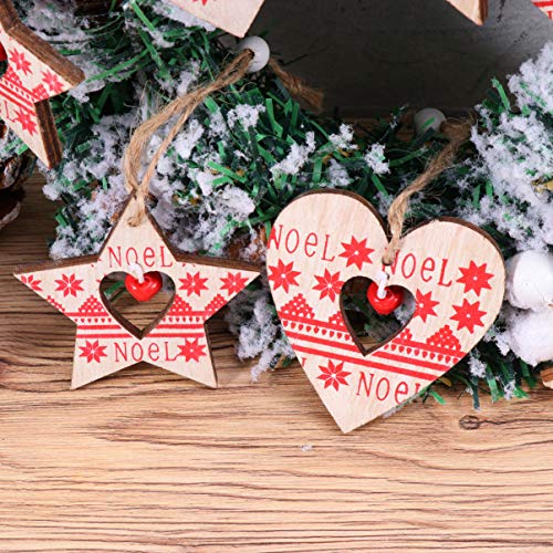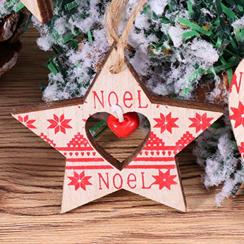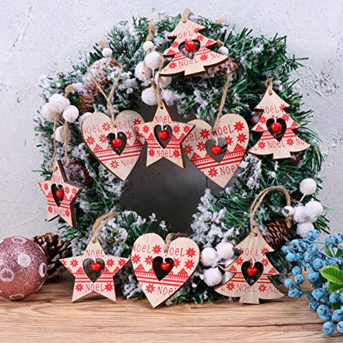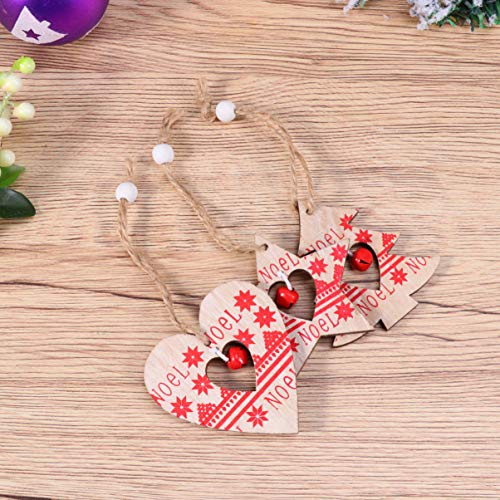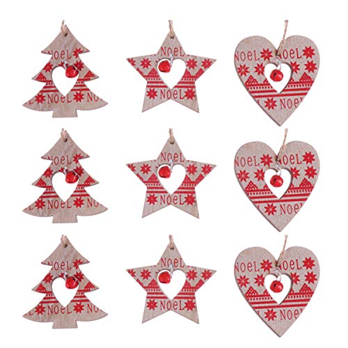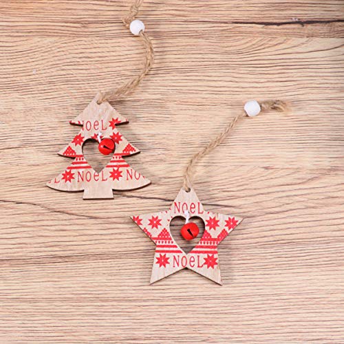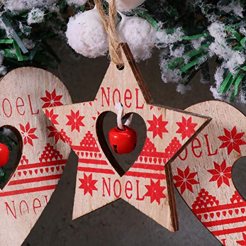 Amosfun 9 stks Houten Kerst Uitsparingen Hout Kerstboom Ster Hart Versiering met Jingle Bell Decoraties Opknoping Kerstboom Ornamenten Vakantie Feestbenodigdheden