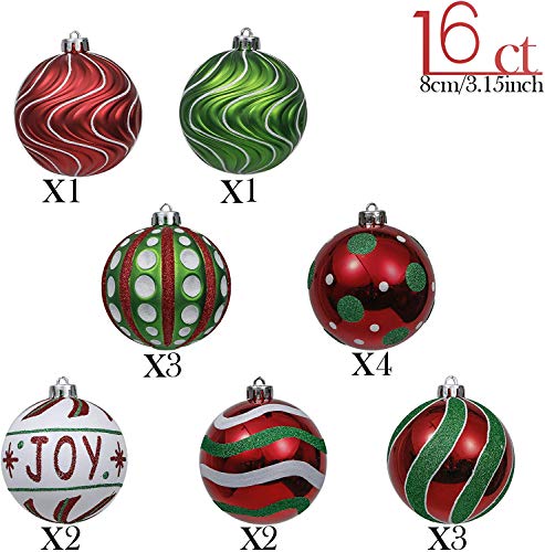 Augustus 16 cm kerstversiering, onbreekbaar klassieke rode, groene en witte reeks Kerstbal ornamenten versieren versieren kerstboom