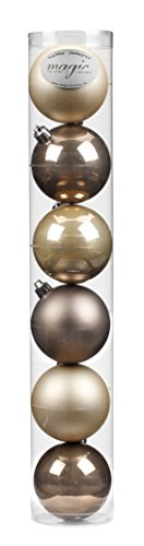 Hoogwaardige kunststof ballen met een diameter van 80 mm in de kleur cool-bruinmix. Uitstekend geschikt voor talrijke kerstdecoraties. De verpakking bevat 6 ballen.