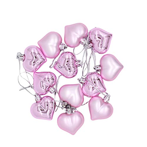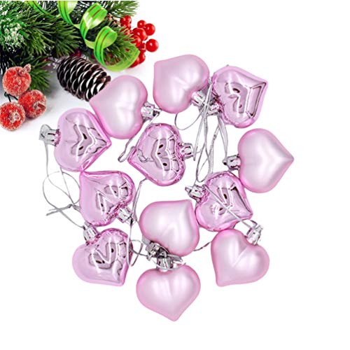 BESPORTBLE 12 Stuks Kerst Hart Kerstballen Hangende Hangers Hart Ornament Voor Hotel Bar Kerstboom Decoratie (Roze)