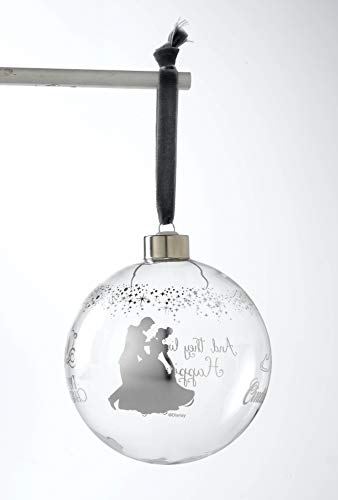 Deze glazen Assepoester en Prince Charming kerstbal is het perfecte cadeau om het gelukkige paar te herinneren aan hun gelukkige ooit na. De kerstbal is geregen met zilveren lint en wordt geleverd in een Disney merkgeschenkdoos. Geen speelgoed of kinderproduct. Alleen bedoeld voor volwassenen.