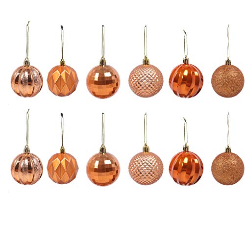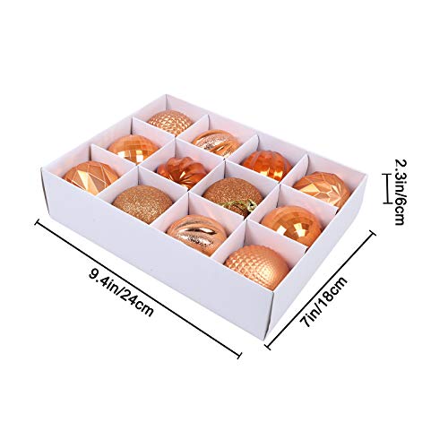 Specificaties: Brisezz Kerstballen, 12 stuks, kleine onbreekbare kerstballen, boxed hanging, set voor kerstfeest, decoratie, boom, hanger, haken inbegrepen 3,5 cm (oranje)