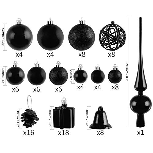 Specificaties: Brubaker 101-delige set kerstballen met boomkant kerstboomversiering zwart