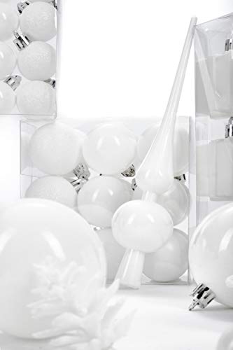 Brubaker 101-delige set kerstballen met boompiek wit grijs kerstboomversiering