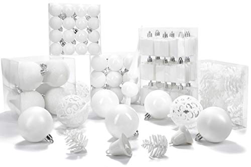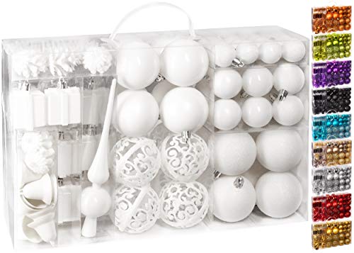 De 101-delige Brubaker set kerstboomversieringen bestaat uit prachtige, onbreekbare kerstballen en een piek.
