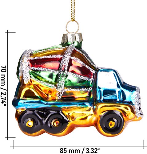 📐 De kleurrijke betonmolenwagen heeft de volgende afmetingen: 8,5 cm x 4,3 cm x 7 cm, gewicht: 32 g. Ontdek onze ongewone variëteit van meer dan 90 grappige kerstballen