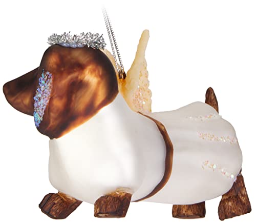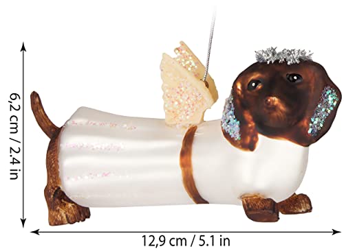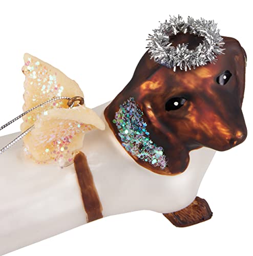BRUBAKER Dachshund als Angel – Handbeschilderde Kerstbal van Glas – Handgeblazen Kerstboomversieringen Figuren Grappige Decoratieve Hangers Boombal – 12,9 cm