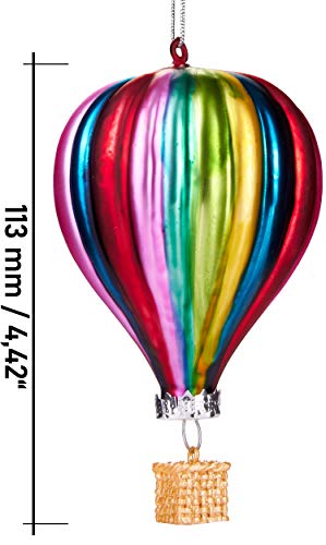 📐 De kleurrijke heteluchtballon heeft de volgende afmetingen: 6,4 cm x 6,4 cm x 11,3 cm, gewicht: 18 g. Ontdek onze ongewone variëteit van meer dan 90 grappige kerstballen