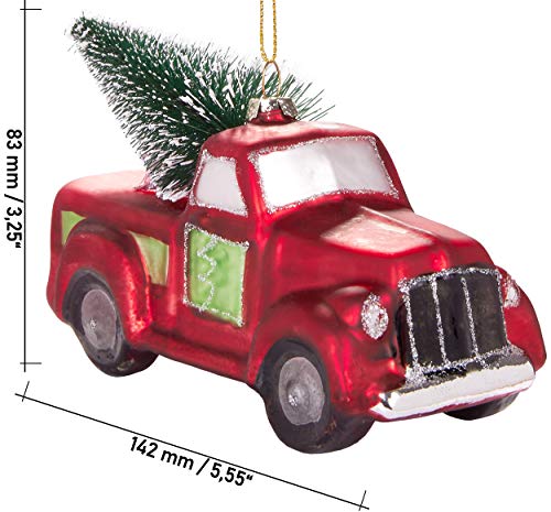 Originele kerstbal: Pick-Up Truck met Rode Kerstboom (glas) – 14,2 cm