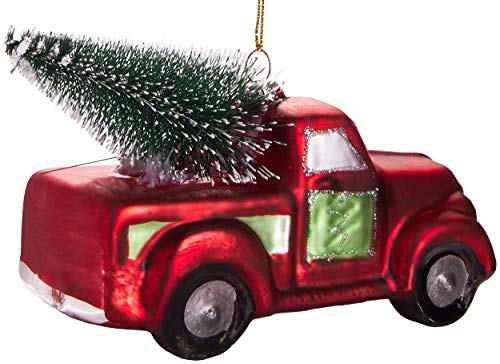 Specificaties: Originele kerstbal: Pick-Up Truck met Rode Kerstboom (glas) – 14,2 cm