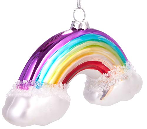 BRUBAKER Regenboog met Kleurrijke Wolken – Handbeschilderde Kerstballen van Glas – Handgeblazen Kerstboomversieringen Figuren Grappige Decoratieve Hangers Boombal – 12 cm