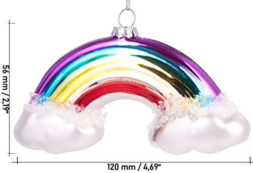 Specificaties: BRUBAKER Regenboog met Kleurrijke Wolken – Handbeschilderde Kerstballen van Glas – Handgeblazen Kerstboomversieringen Figuren Grappige Decoratieve Hangers Boombal – 12 cm