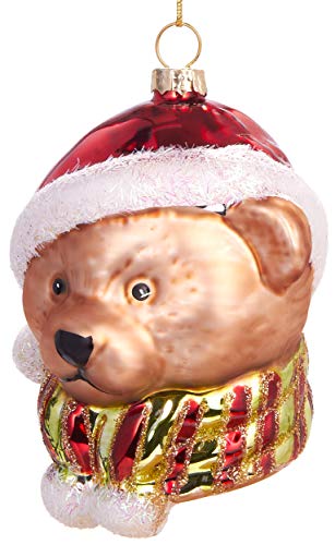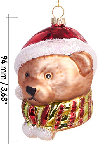 📐 De schattige teddybeer met de sjaal en kerstmuts heeft de volgende afmetingen: 7,2 cm x 6,8 cm x 9,4 cm, gewicht: 34 g. Ontdek onze ongewone variëteit van meer dan 90 grappige kerstballen