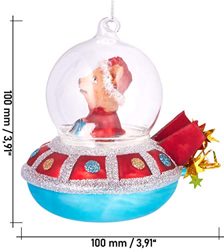 📐 De kerst-UFO heeft de volgende afmetingen: 10 cm x 8,5 cm x 10 cm, gewicht: 64 gram. Ontdek onze ongewone variëteit van meer dan 90 grappige kerstballen