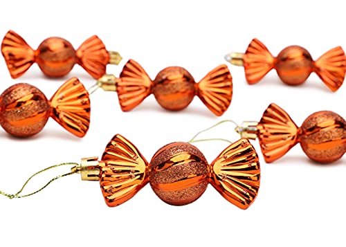 Christmas Concepts® Pack van 6 – 90mm Zoet gevormde kerstballen – Glanzend & Glitter Versierd – Kerstboomversieringen (Copper)