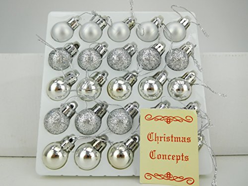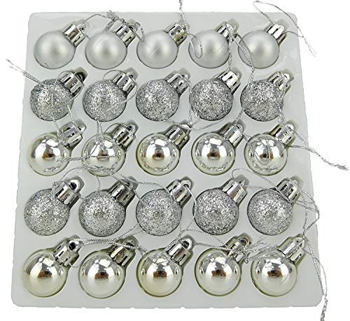Christmas Concepts® Pakket met 25-25 mm Mini-Kerstballen – Glanzende, Matte en Glitterversierde Kerstballen (Zilver)
