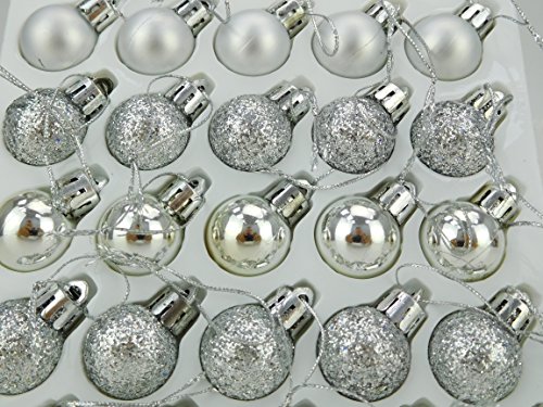 Specificaties: Christmas Concepts® Pakket met 25-25 mm Mini-Kerstballen – Glanzende, Matte en Glitterversierde Kerstballen (Zilver)