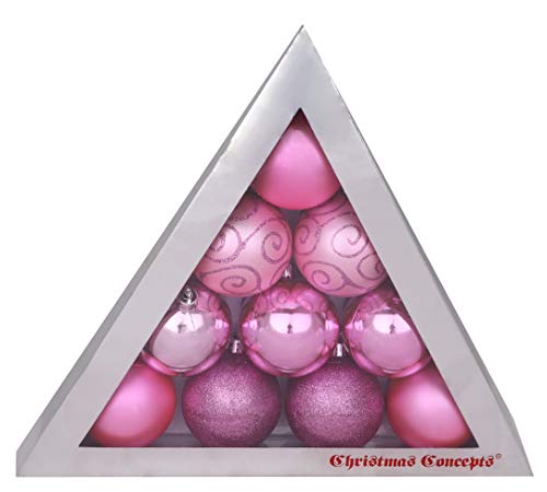 Specificaties: Christmas Concepts® Pakket van 10 60mm – Kerstboomballen – Glanzende, Matte en Glitter Versierde Kerstballen (Baby roze)