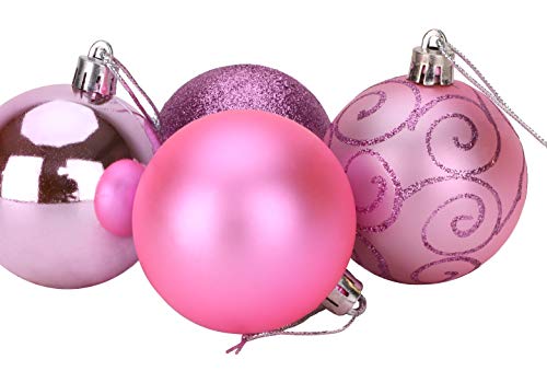 Deze zijn fantastisch om elke boom te versieren. Ze zullen de boom zeker opvrolijken. Ze kunnen ook worden gebruikt om een ??slinger te maken door een touwtje door de kerstballen te halen en op te hangen voor het raam of aan de muur. Er zijn in totaal 10 roze kerstballen, deze zijn assorti glitter, mat, swirl en glanzend. Ze hebben een zilveren bovenkant voor de draad, draad niet inbegrepen.