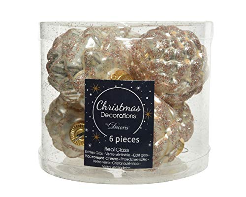 Christmas-Decorations 6 kerstballen glas grote dennenappels champagne
