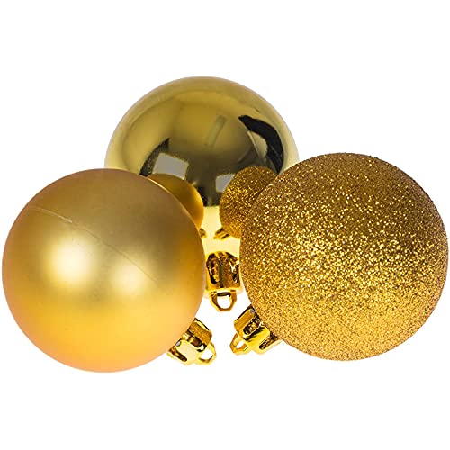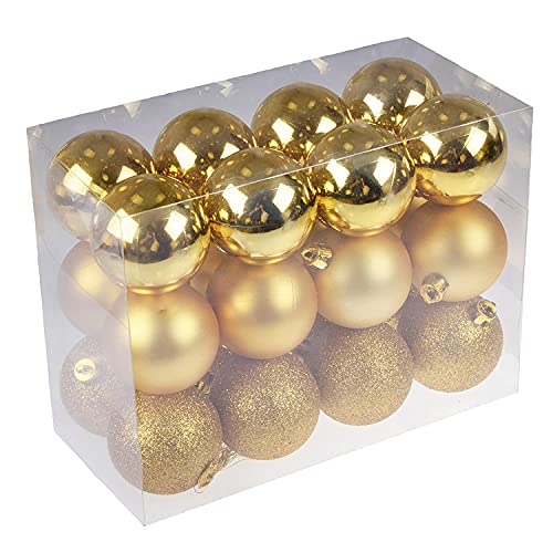 CL-Link 24 stuks kerstballen, kerstboomdecoratie, glanzend, mat en glitter, kerstballen, ornamenten voor Kerstmis, vakantie, bruiloft, decoratie, thuis, festival, decoratie (3 cm, goud)