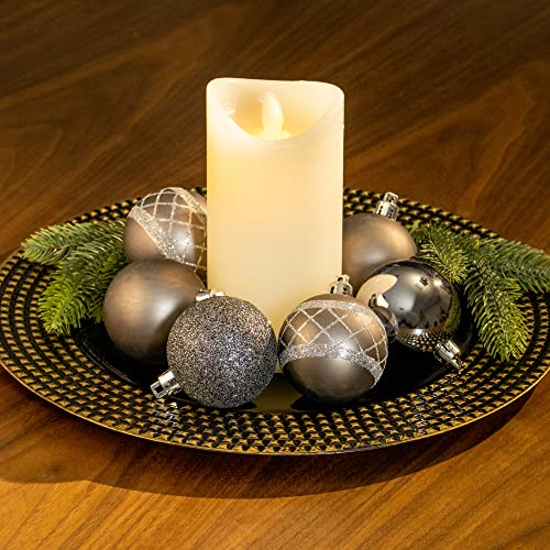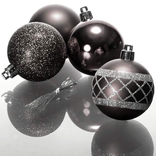 LEVERINGSOMVANG: 20x ballen (met hanger) Kleur: grijs, 5x mat, 5x glanzend, 5x mat met glitter, 5x glitter // Materiaal: plastic // Afmetingen: Ø 6 cm