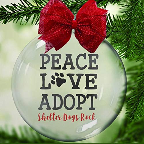Peace, Love, Adopt – kerstbal voor adoptiehond – doorzichtig en vulbaar