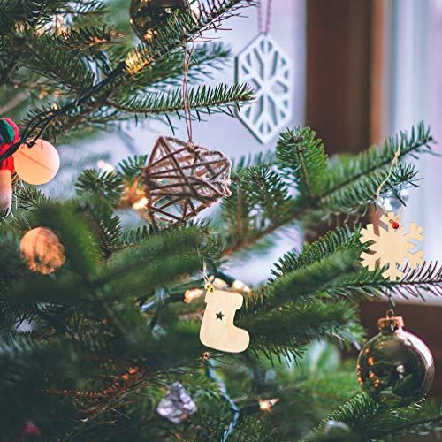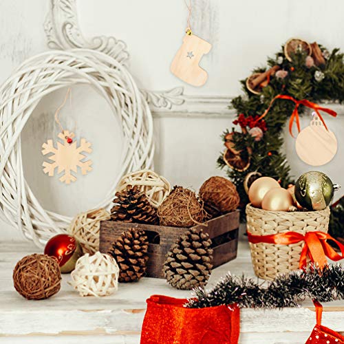 EXCEART 240 Stuks Kerst Houten Ornamenten Kousen Sneeuwvlok Boom Kerstbal Onafgewerkt Hout Plakjes Opknoping Houten Uitsparingen Versiering Voor Kerstboom Hanger
