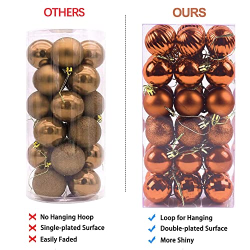 Feliciay 36 stks Kerstballen Diverse Hanger Onbreekbaar Ornament Set Kerstboom Decoraties Opknoping Decoratie Seizoensgebonden Vakantie Bruiloft Party Decoratieve Hangers (Bruin, 4 cm)