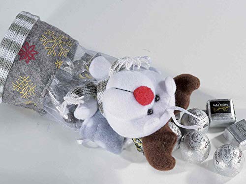 Kerstdecoratie om op te hangen in de vorm van een snoepzakje met pluche.