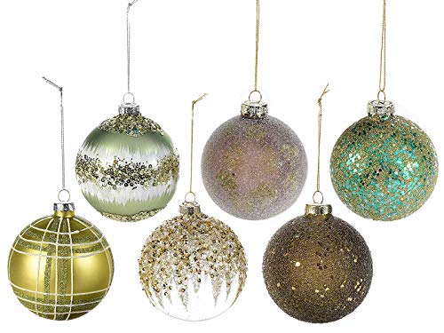 Groep Maruccia kerstballen van glas om op te hangen, 12 stuks, gesorteerd kerstdecoratie om op te hangen, kerstboomdecoratie