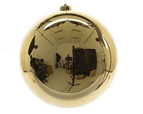Enorme goudkleurige kerstbal in maat XXL om op te hangen. Decoratief, je kunt het aan een plafond, een balk of ook met een open haard ophangen. Modieus, je kunt het ook in het midden van je tafel tijdens het feest of in je etalage plaatsen. – Kleur: goud – glanzende afwerking – hanglamp goud – materiaal: kunststof diameter: 25 cm – ook verkrijgbaar in verschillende kleuren en diameters 14 en 20 cm.