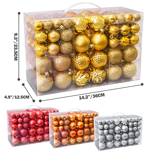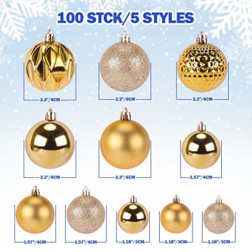 🎄 【Afmetingen van de ornament: 3 cm, 4 cm, 6 cm, verschillende vormen plastic kerstballen en zaklamppoederverpakking met 100 ballen. Perfecte pasvorm voor elke normale maat boom. Je kunt ze gebruiken om tafelblad, kerstbomen te versieren, vul de kleine ruimte en de uiteinden van de standaard bomen. Boomballen met een laag gewicht en zullen de kersttakken niet verzwaren.